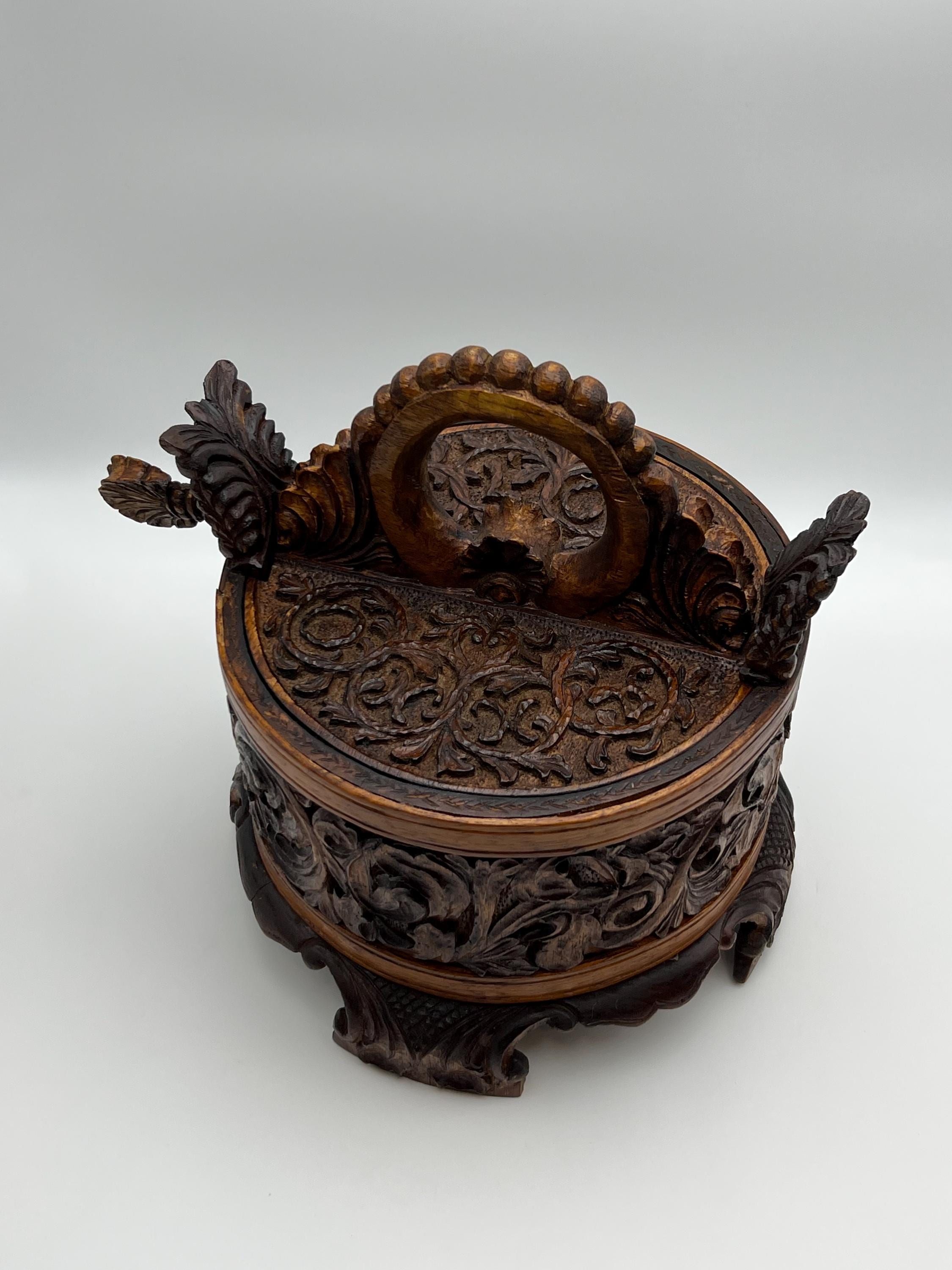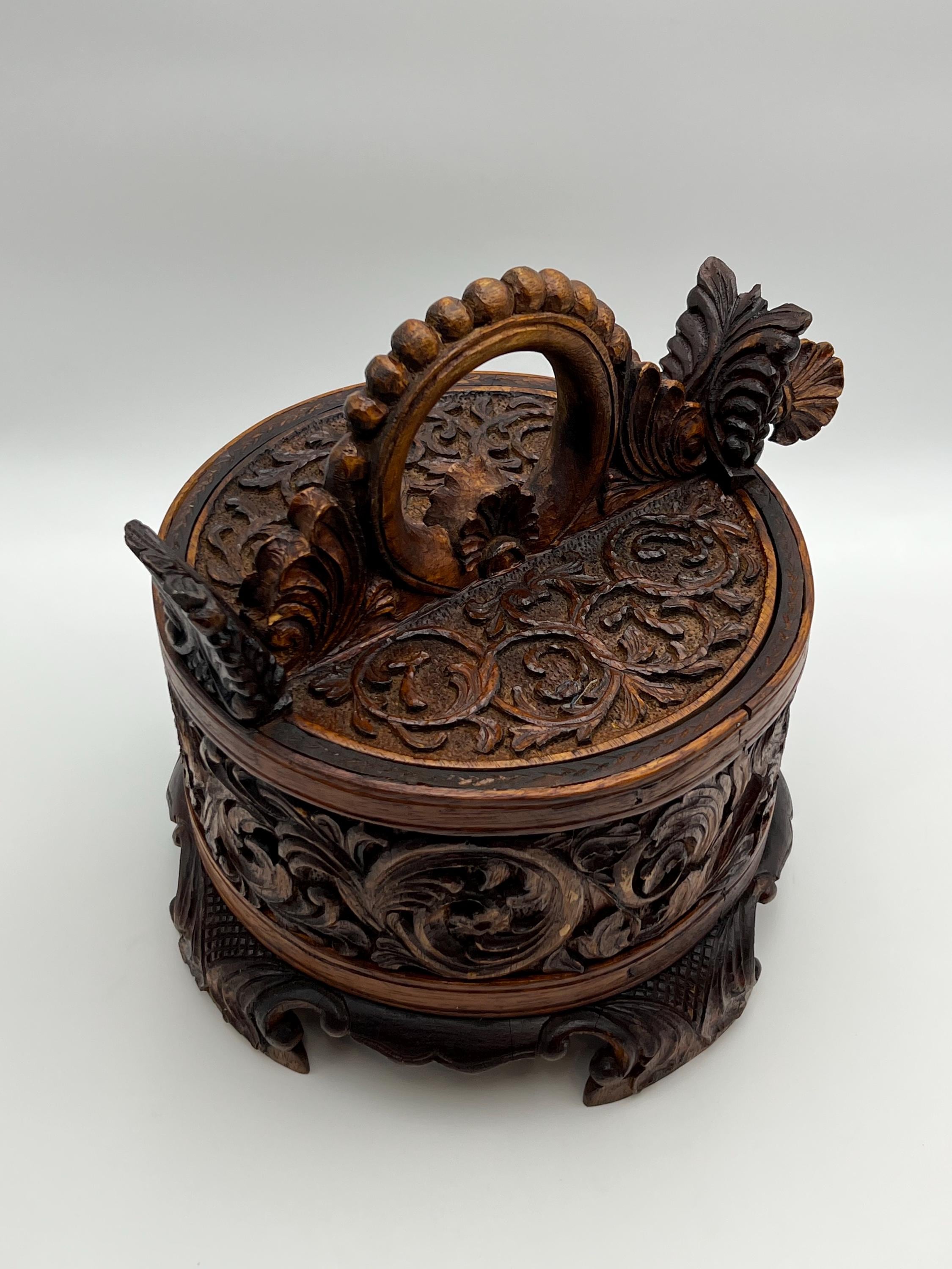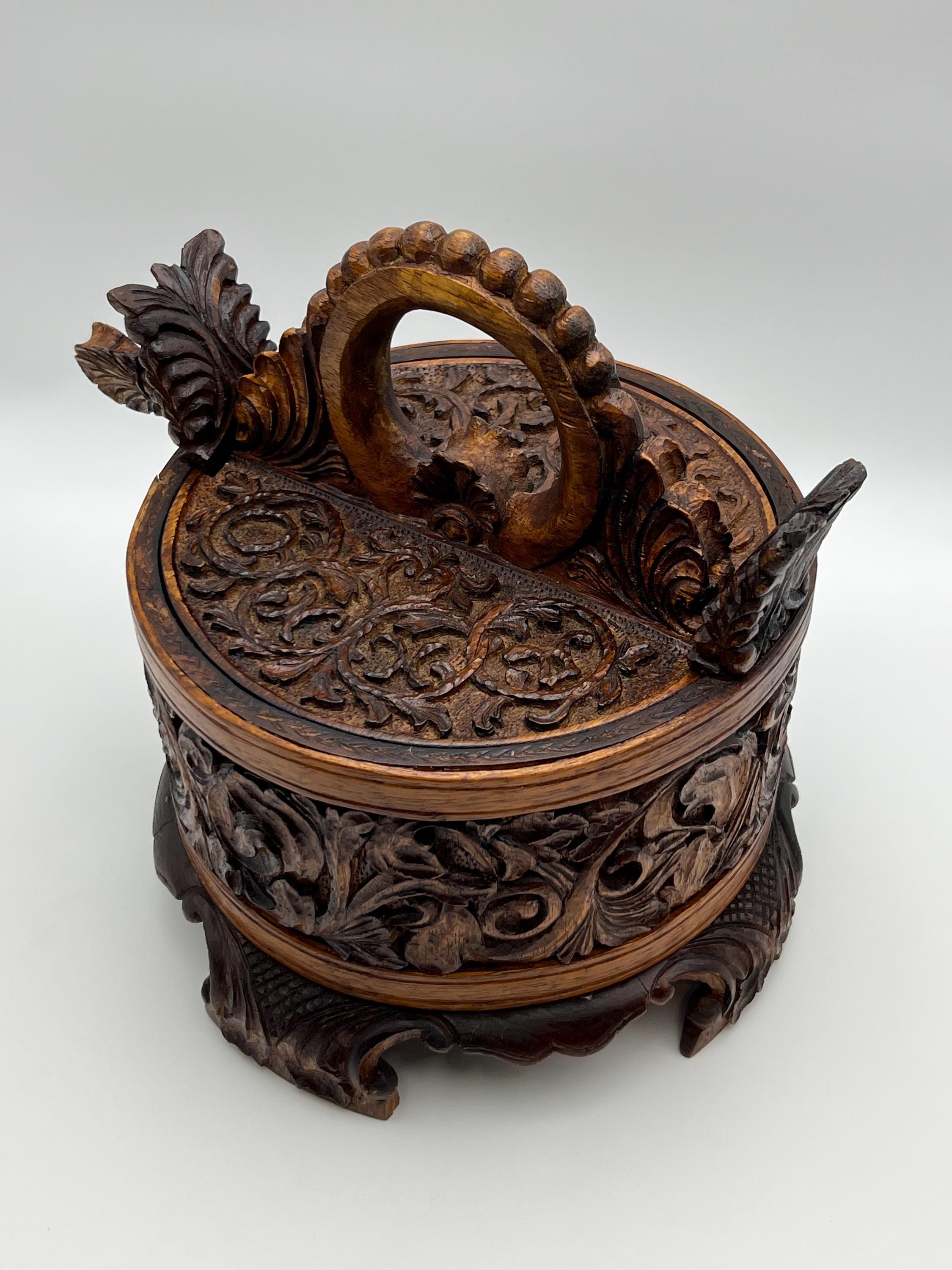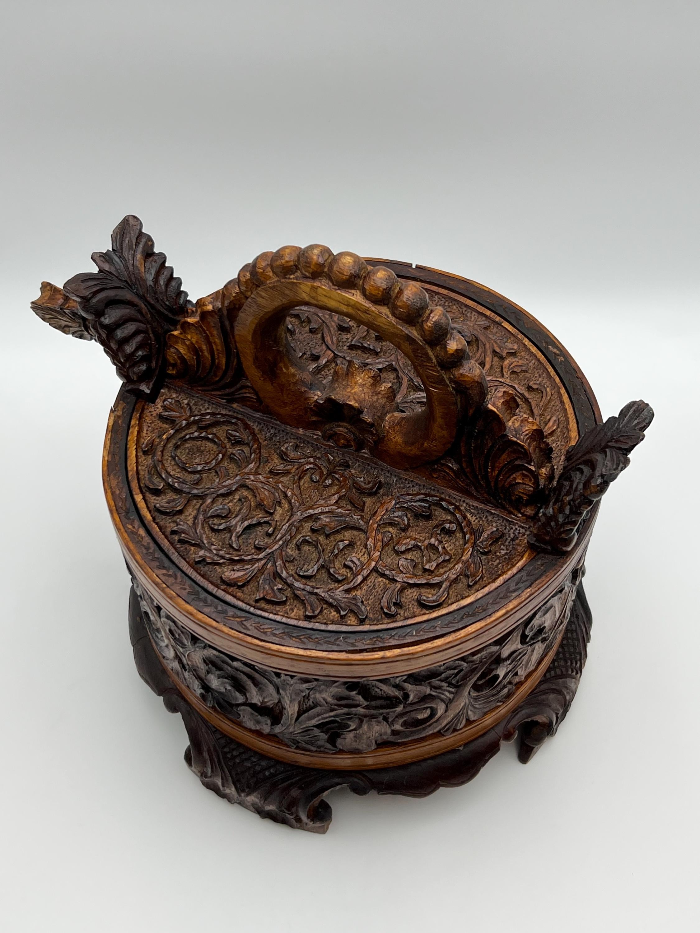 Presenting a superb example of Norwegian folk art, this hand-carved oak butter bucket (or porridge ambar) hails from the revered Gudbrandsdalen region. Dating from the turn of the 20th century / the first half of the 20th century, this piece embodies the pinnacle of Scandinavian woodcarving tradition, where functional form meets extraordinary artistry. Its exceptional state of preservation and masterful execution place it firmly in the realm of museum-quality collectibles.