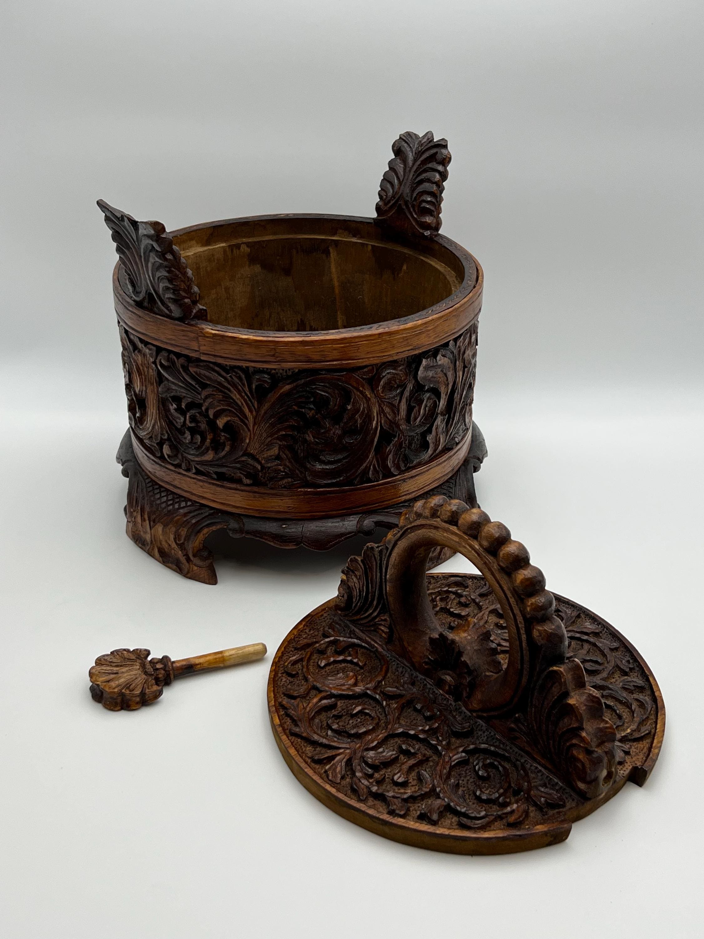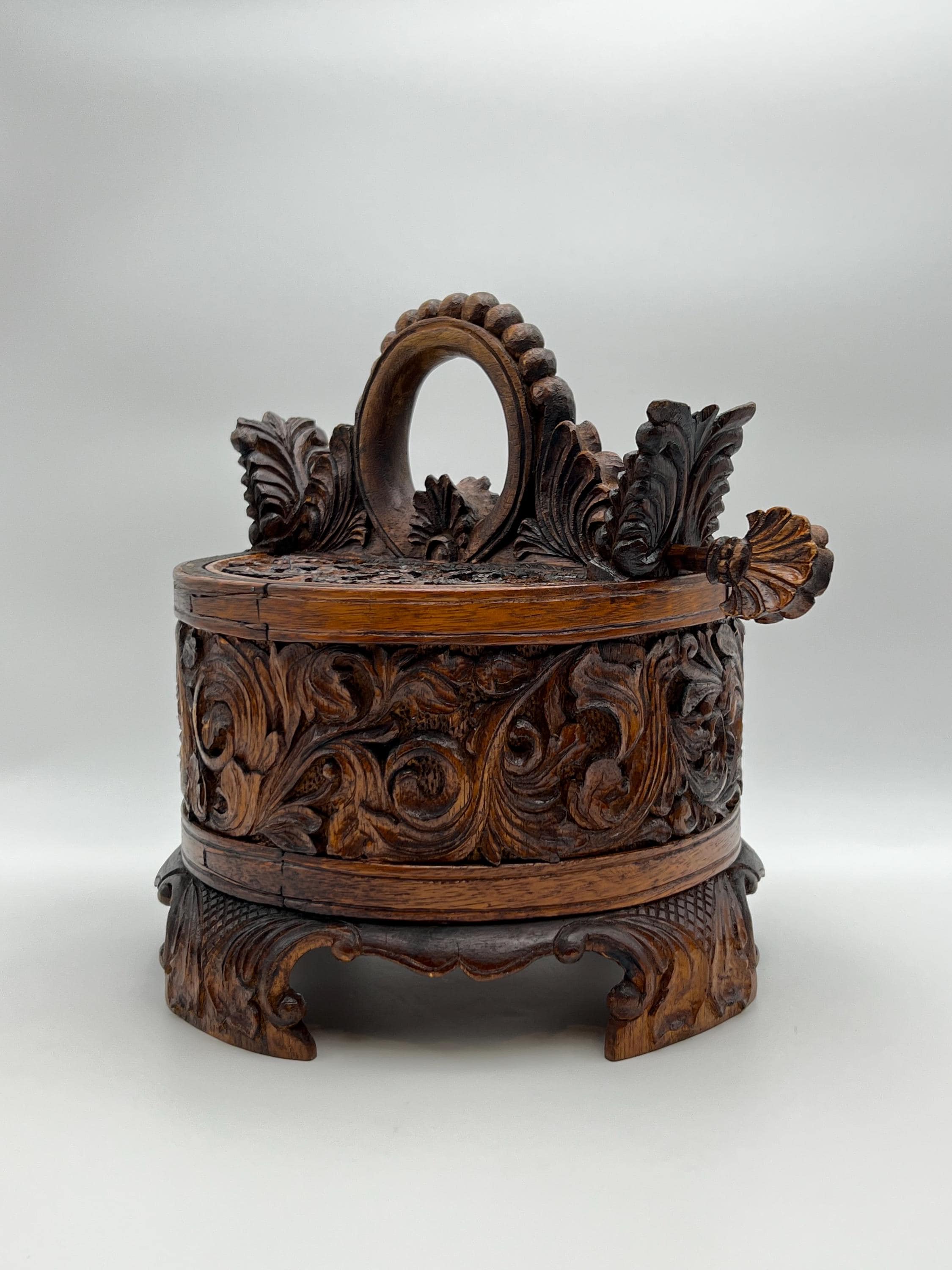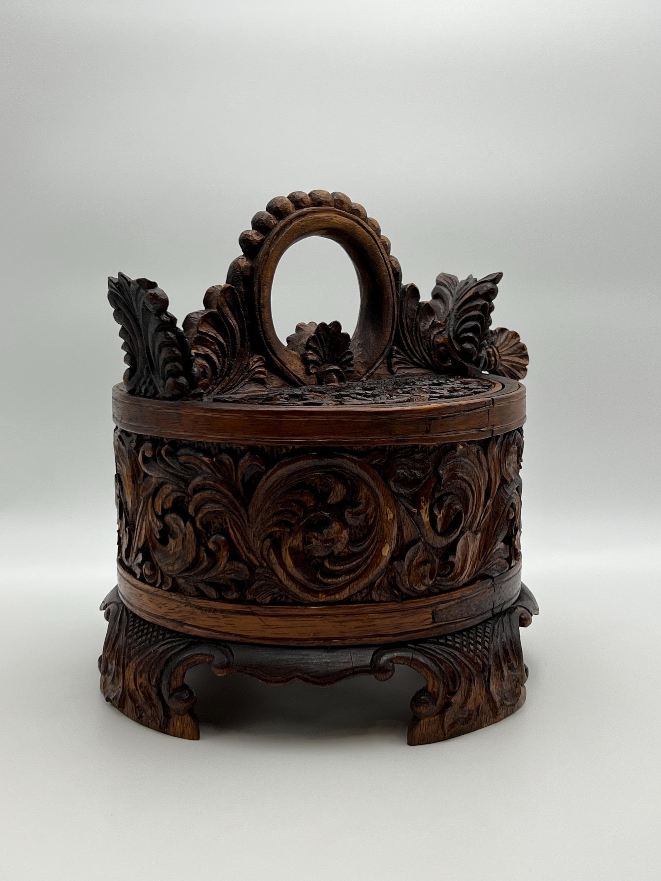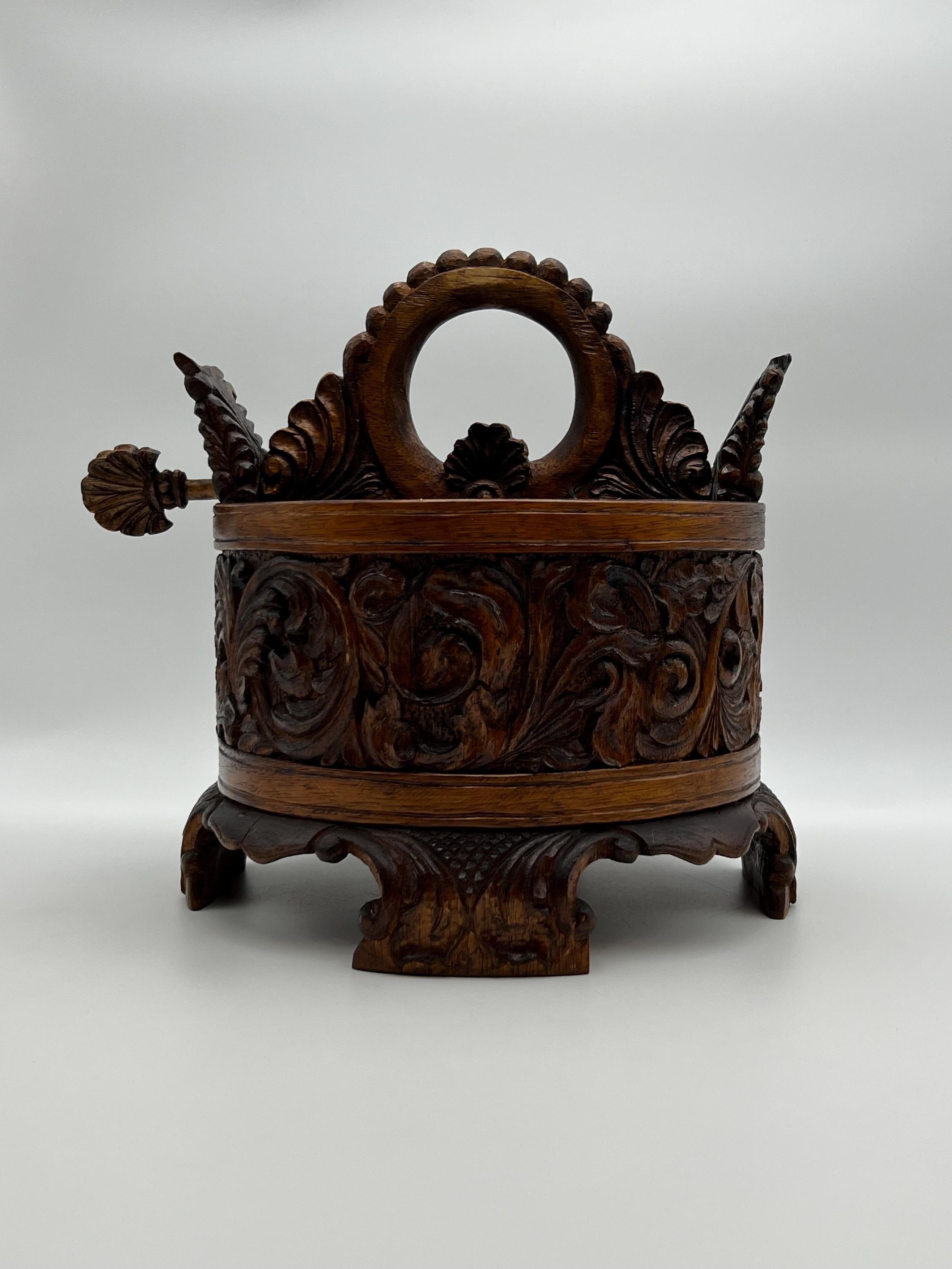 A Masterpiece of Gudbrandsdalen Craftsmanship: Exceptional Carved Oak Butter Bucket