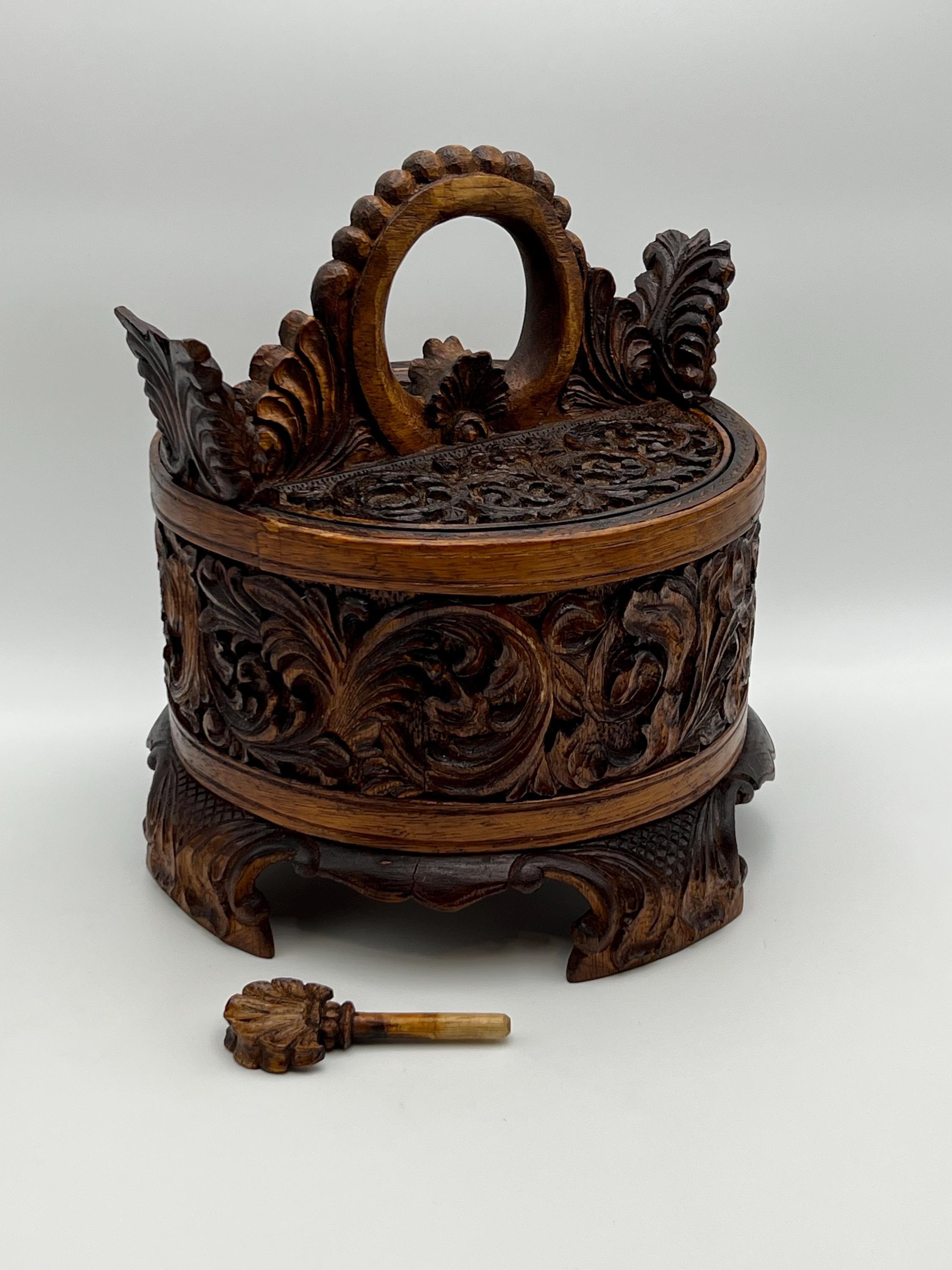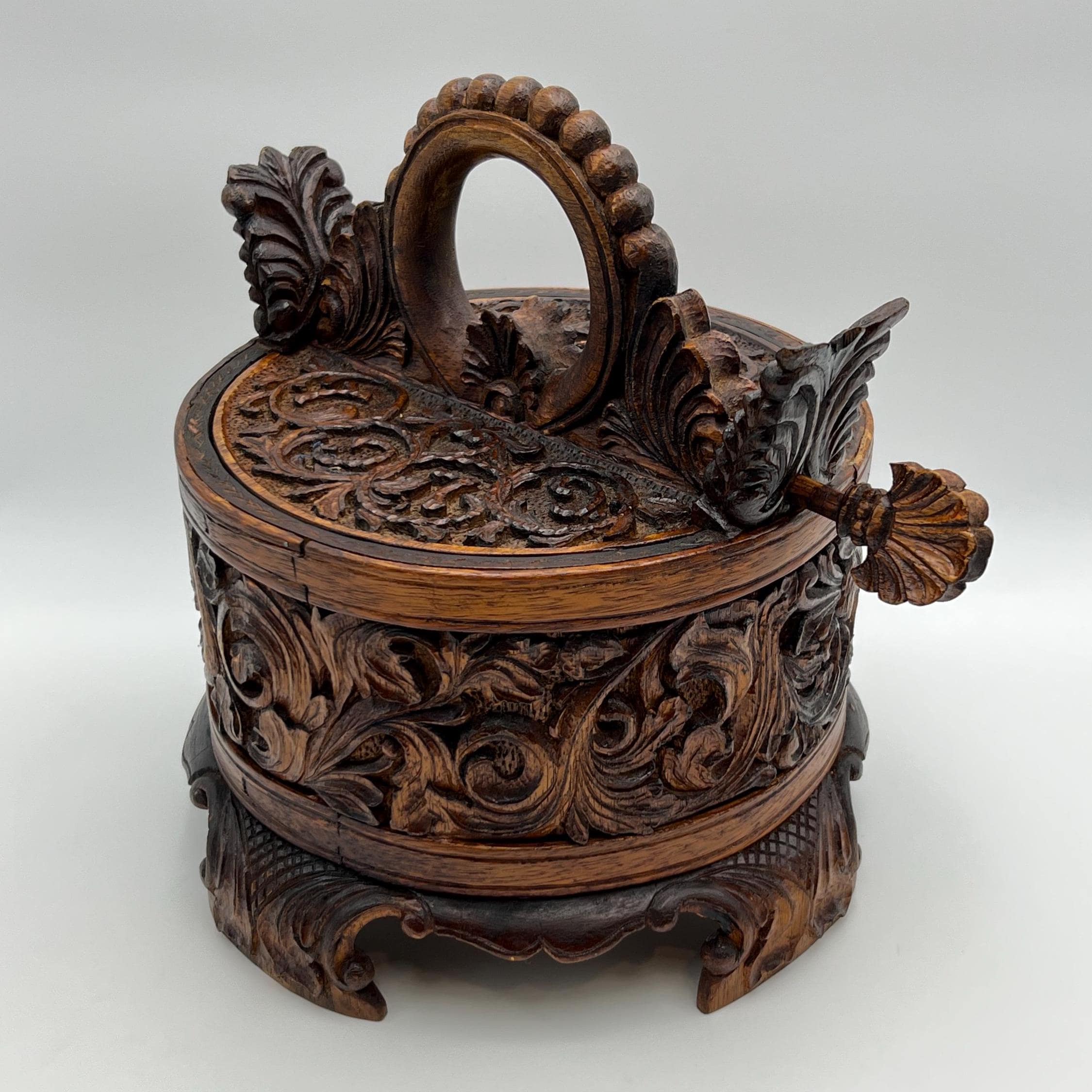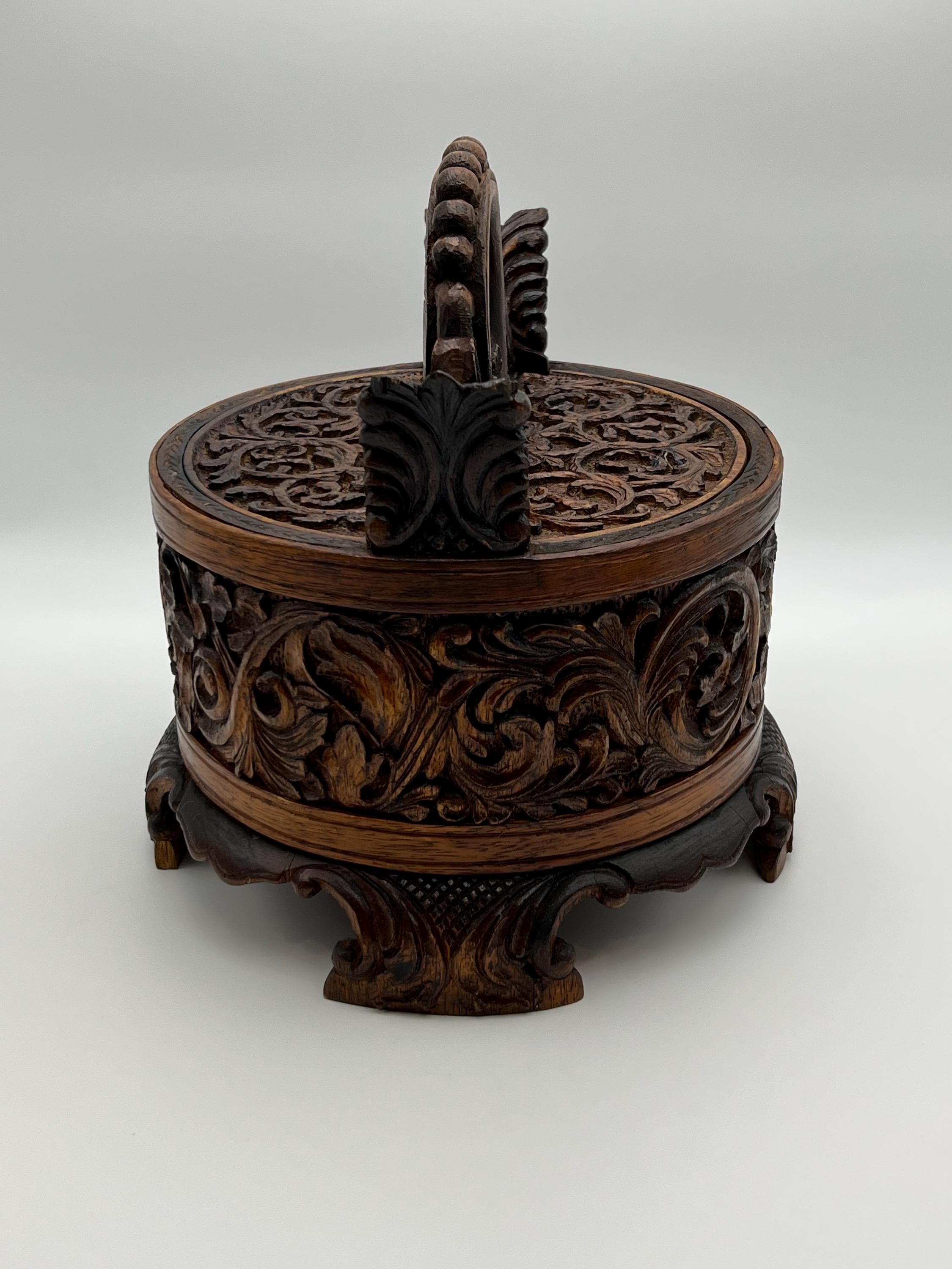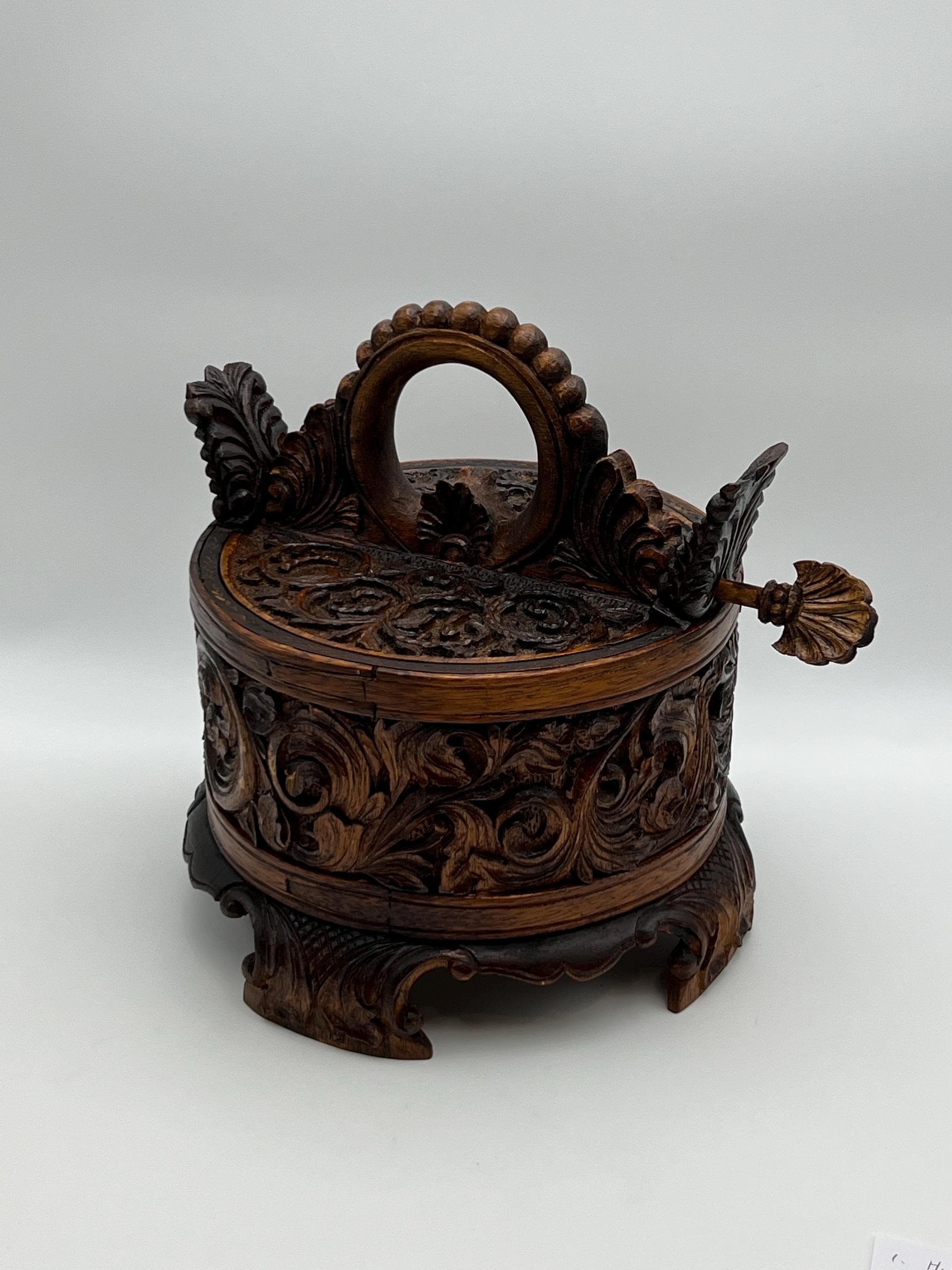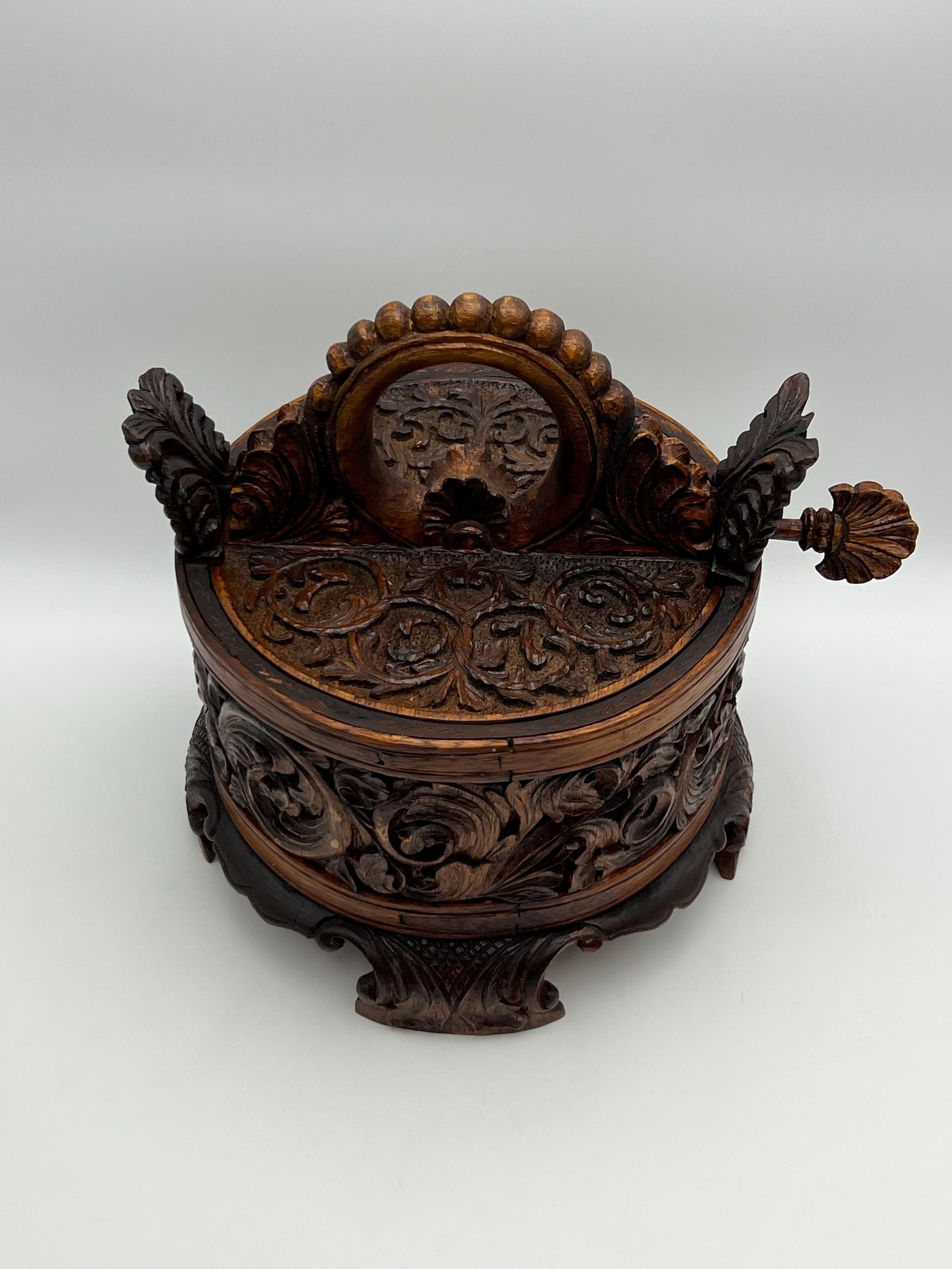 A Masterpiece of Gudbrandsdalen Craftsmanship: Exceptional Carved Oak Butter Bucket