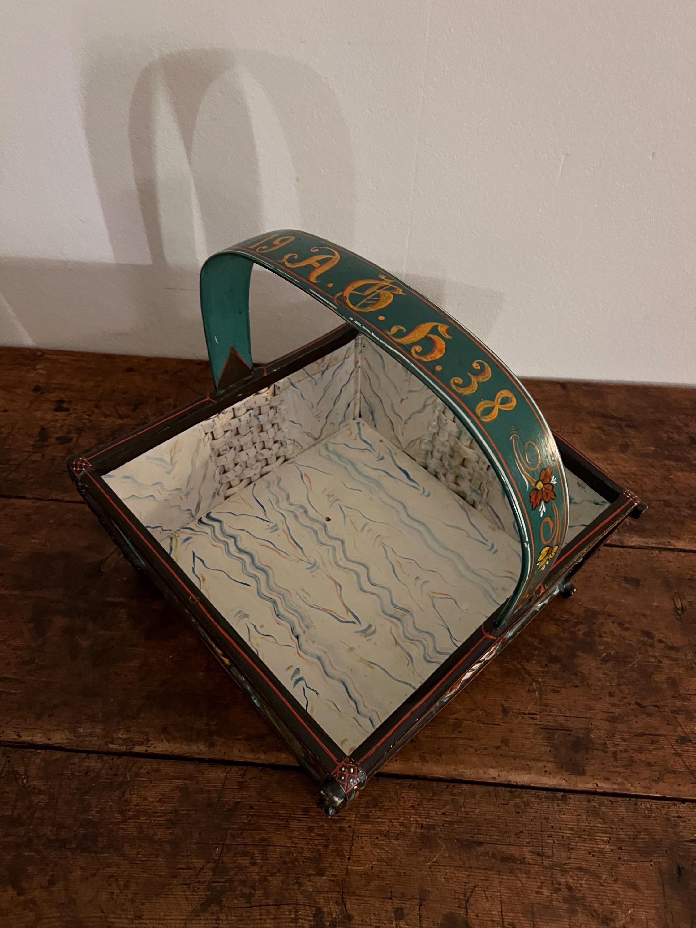 **One-of-a-Kind Norwegian Rosemaling Basket – A Masterpiece of Telemark Folk Art (1938)**