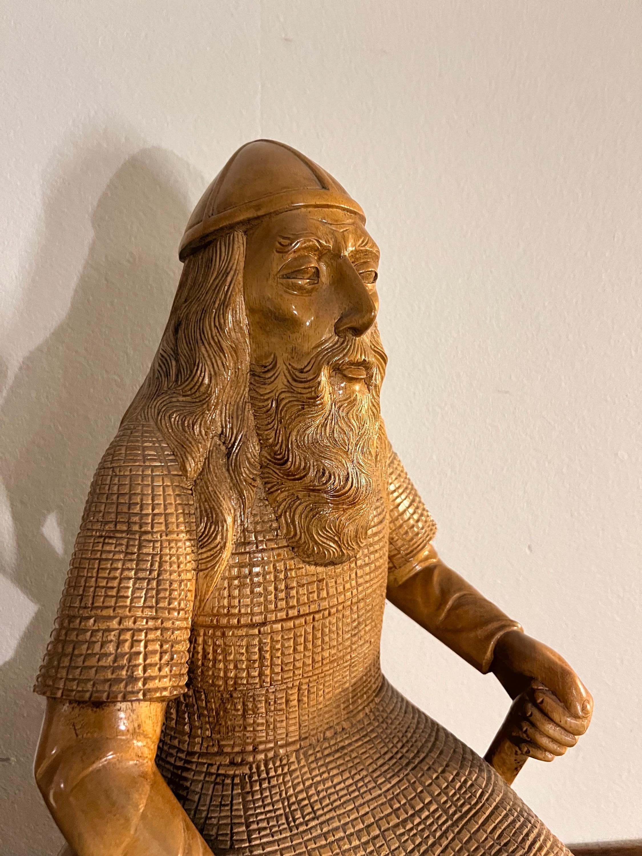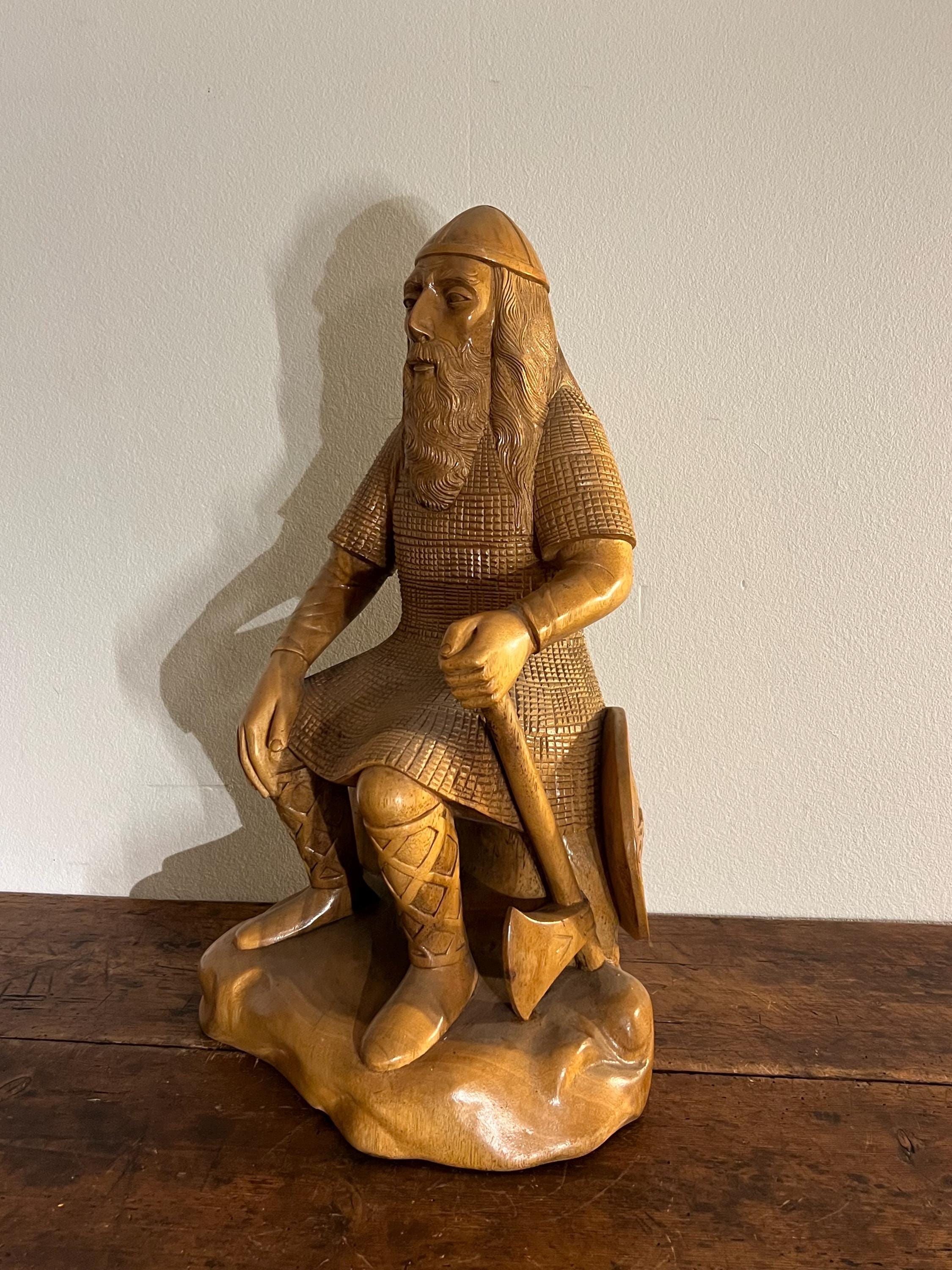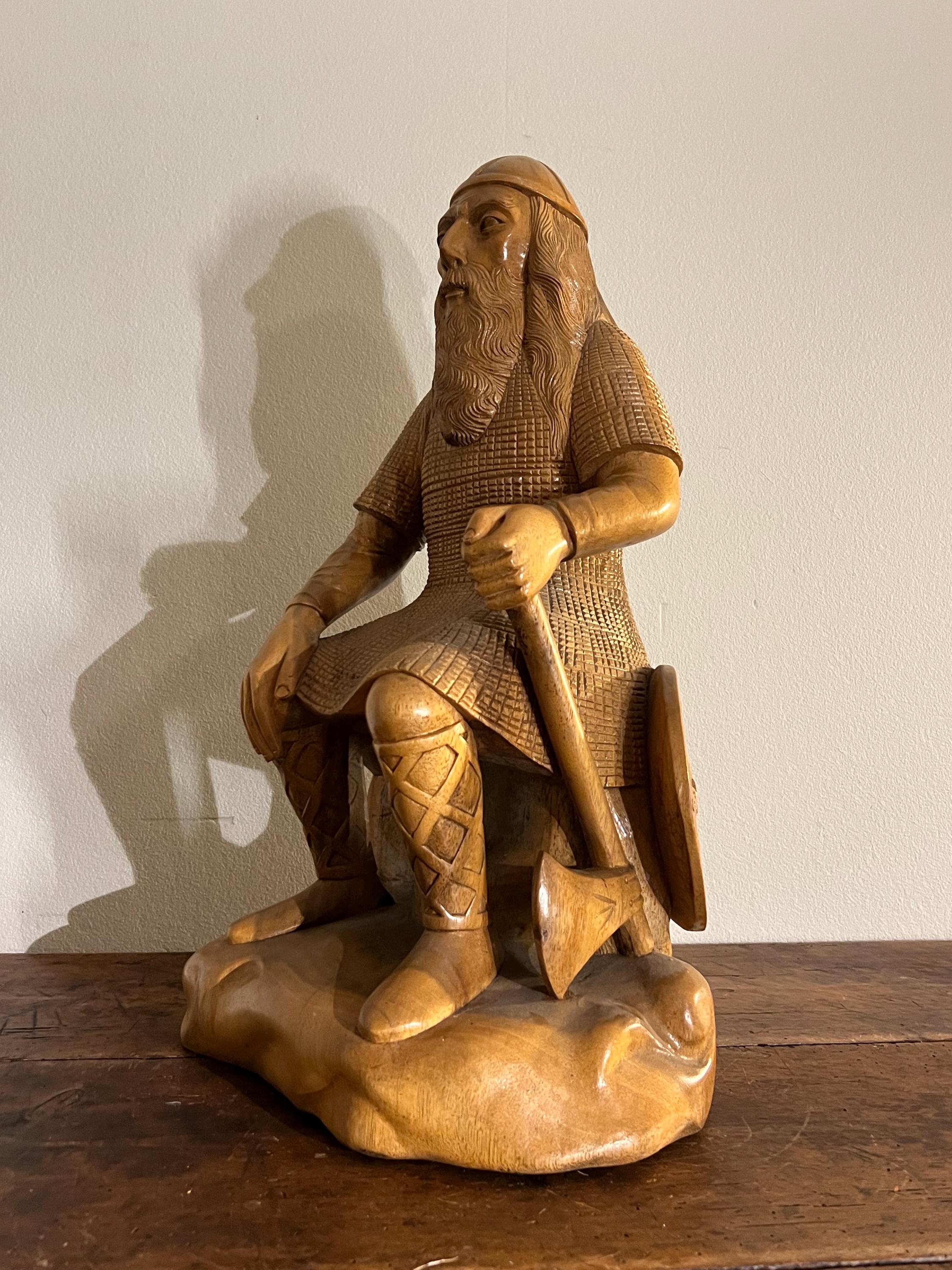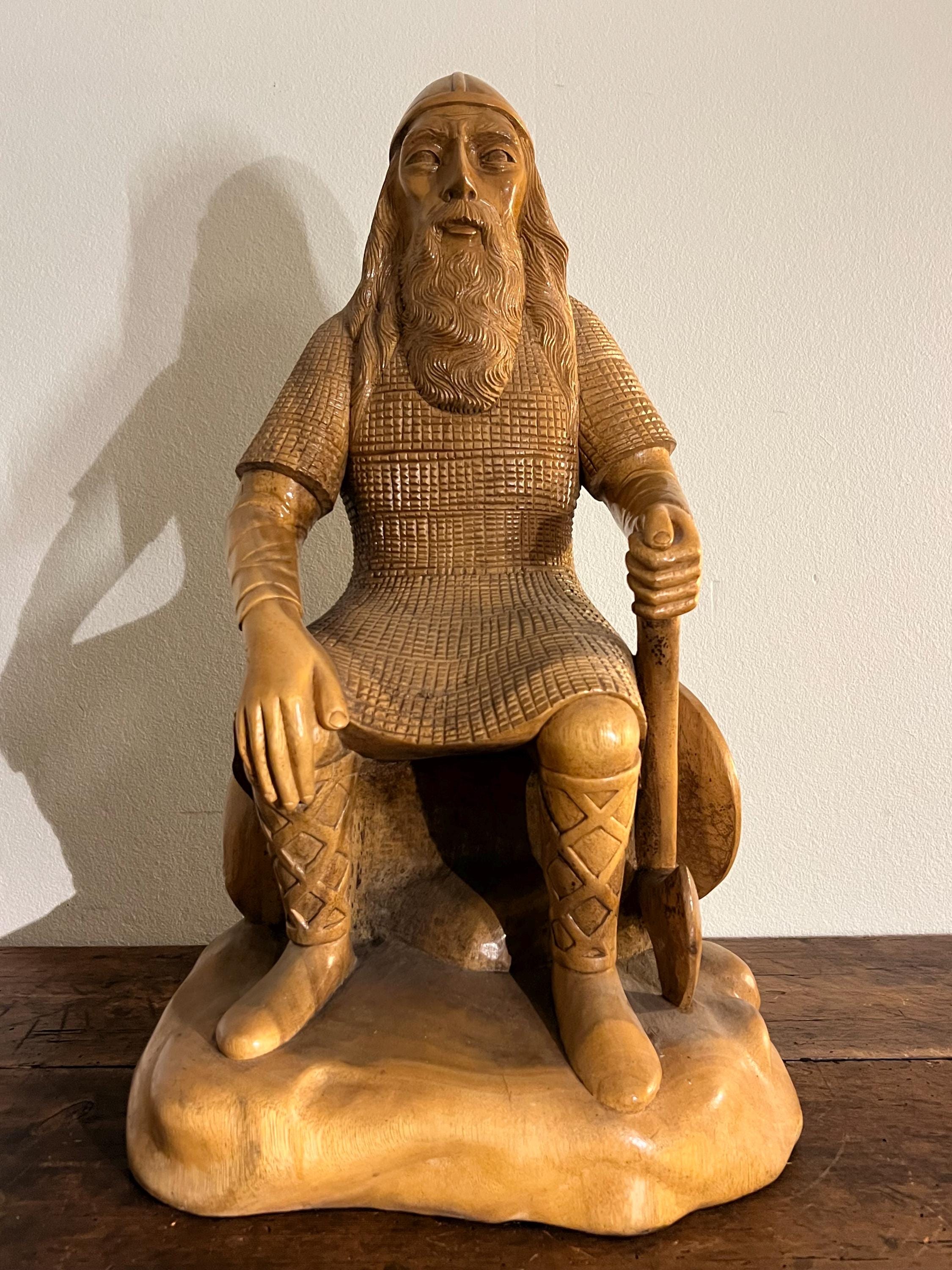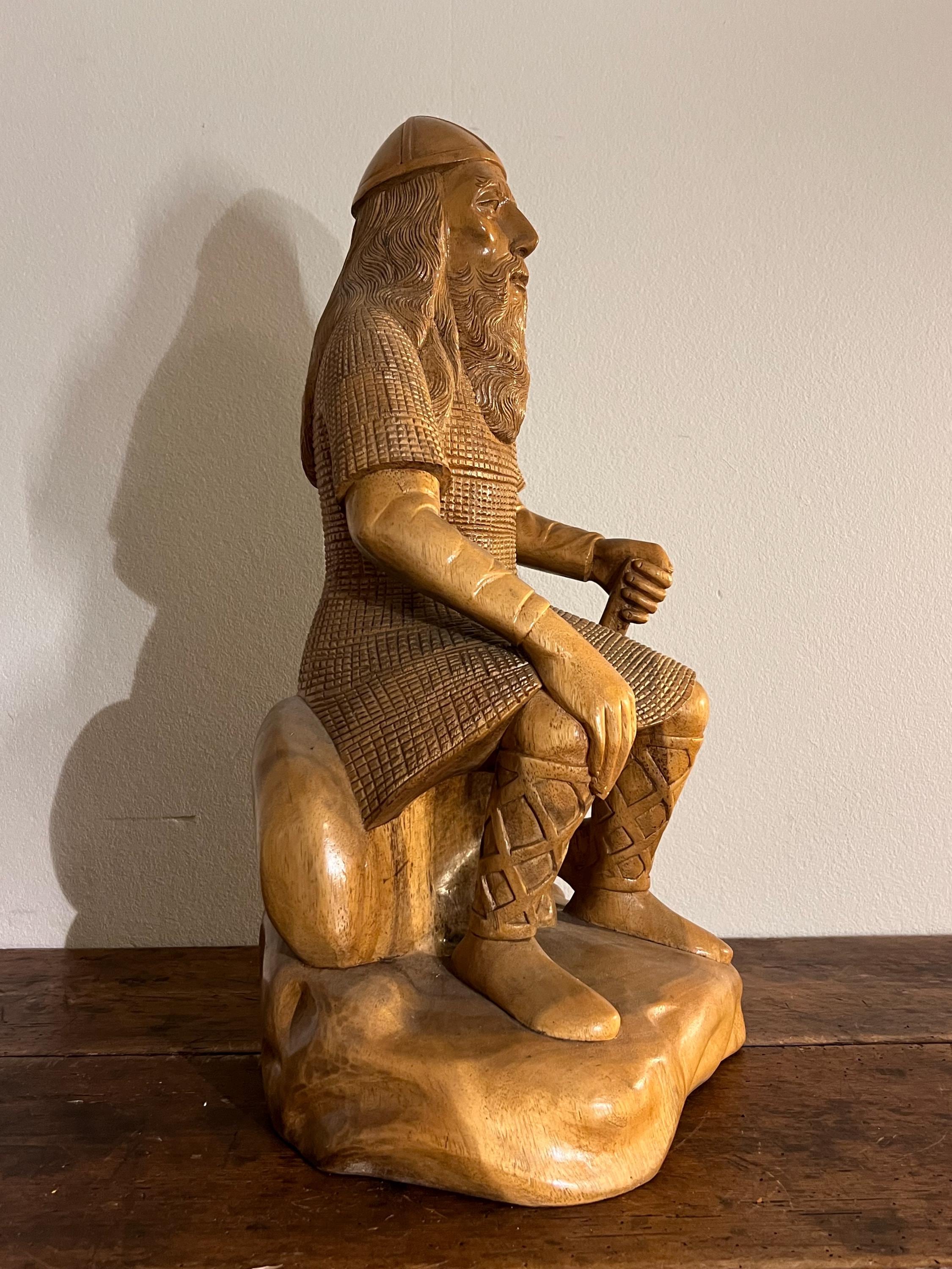 Mid-20th Century Norwegian Hand-Carved Viking Sculpture - Possibly King Eric Bloodaxe (Eirik Blodøks, King of Norway c. 930-935)