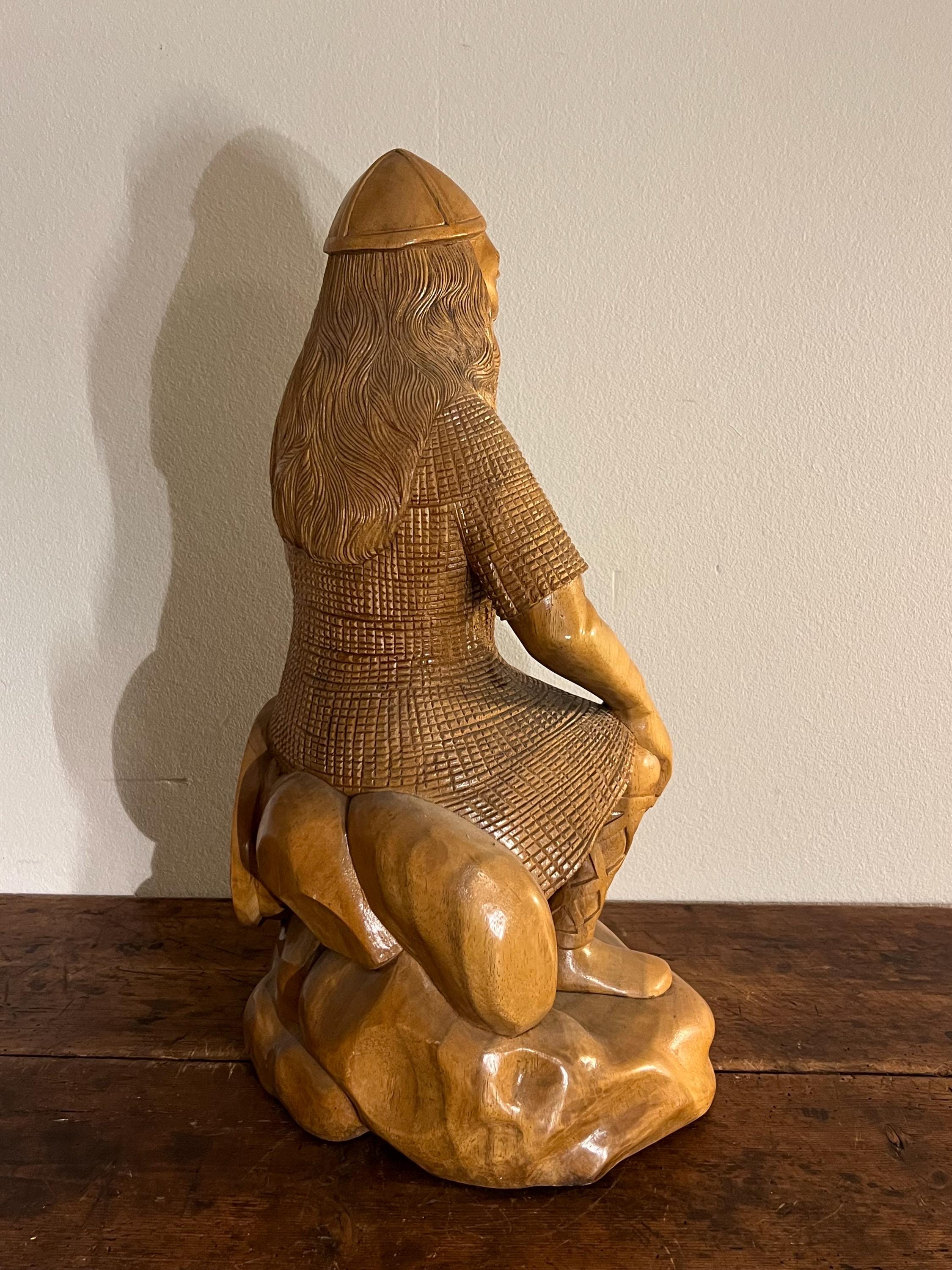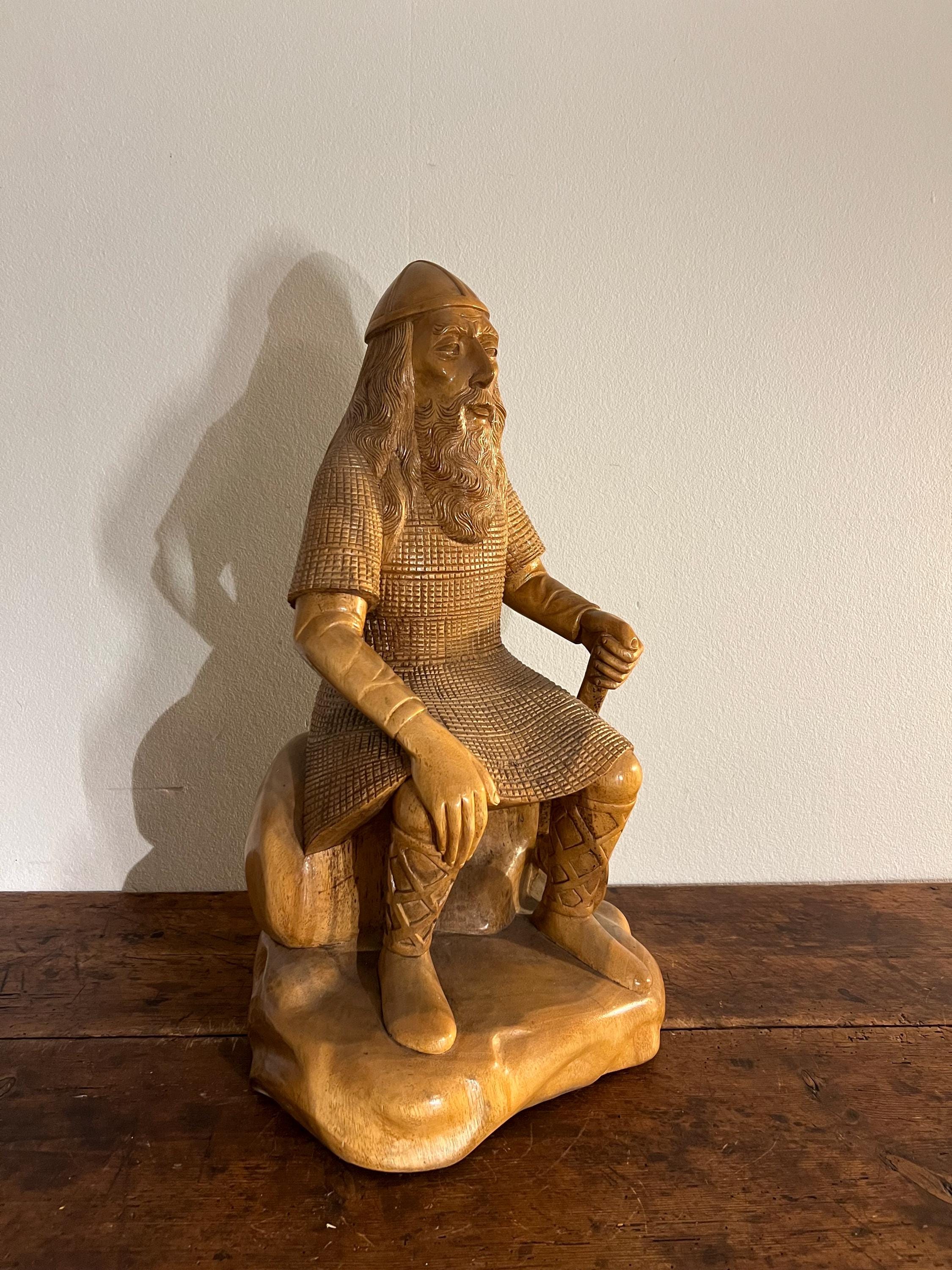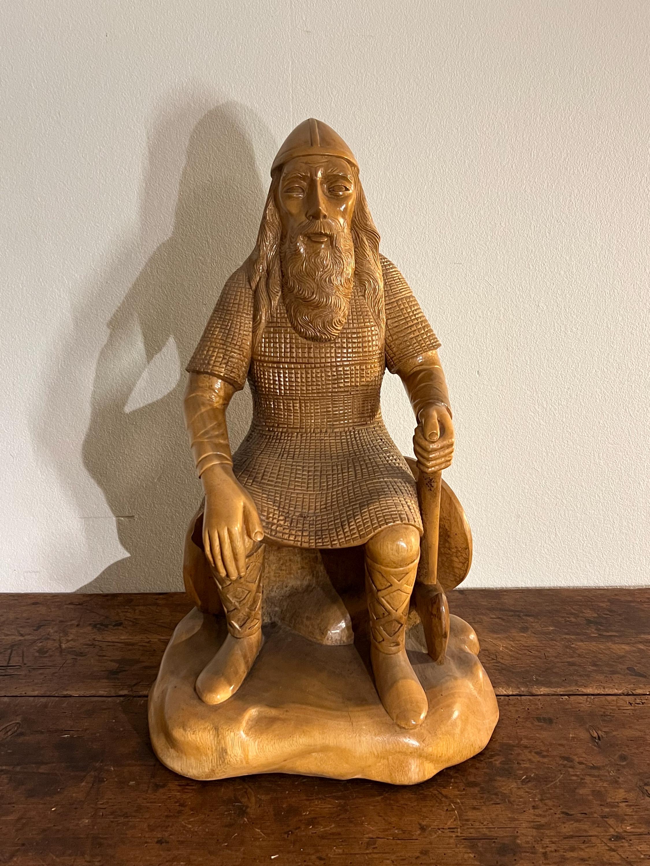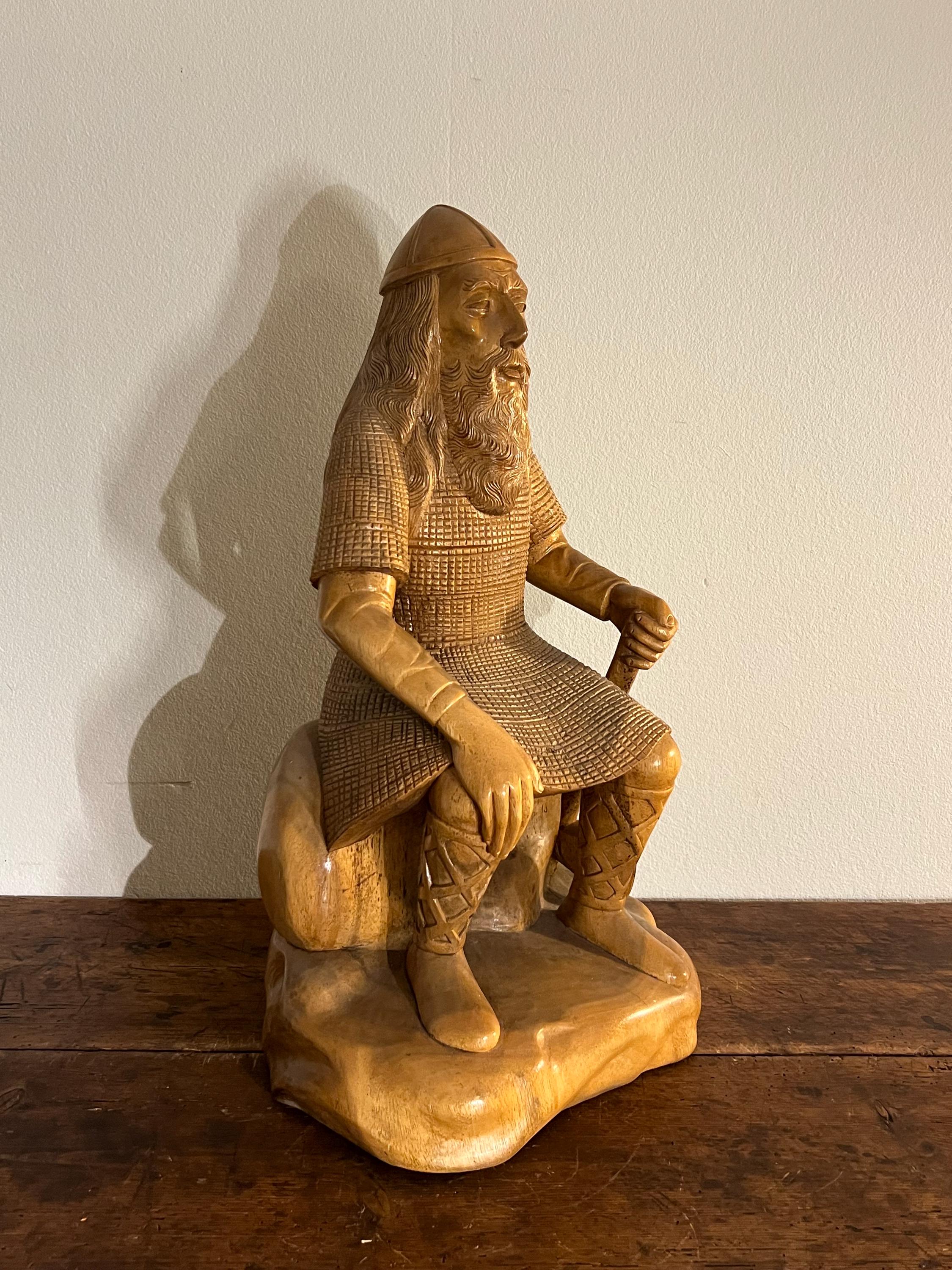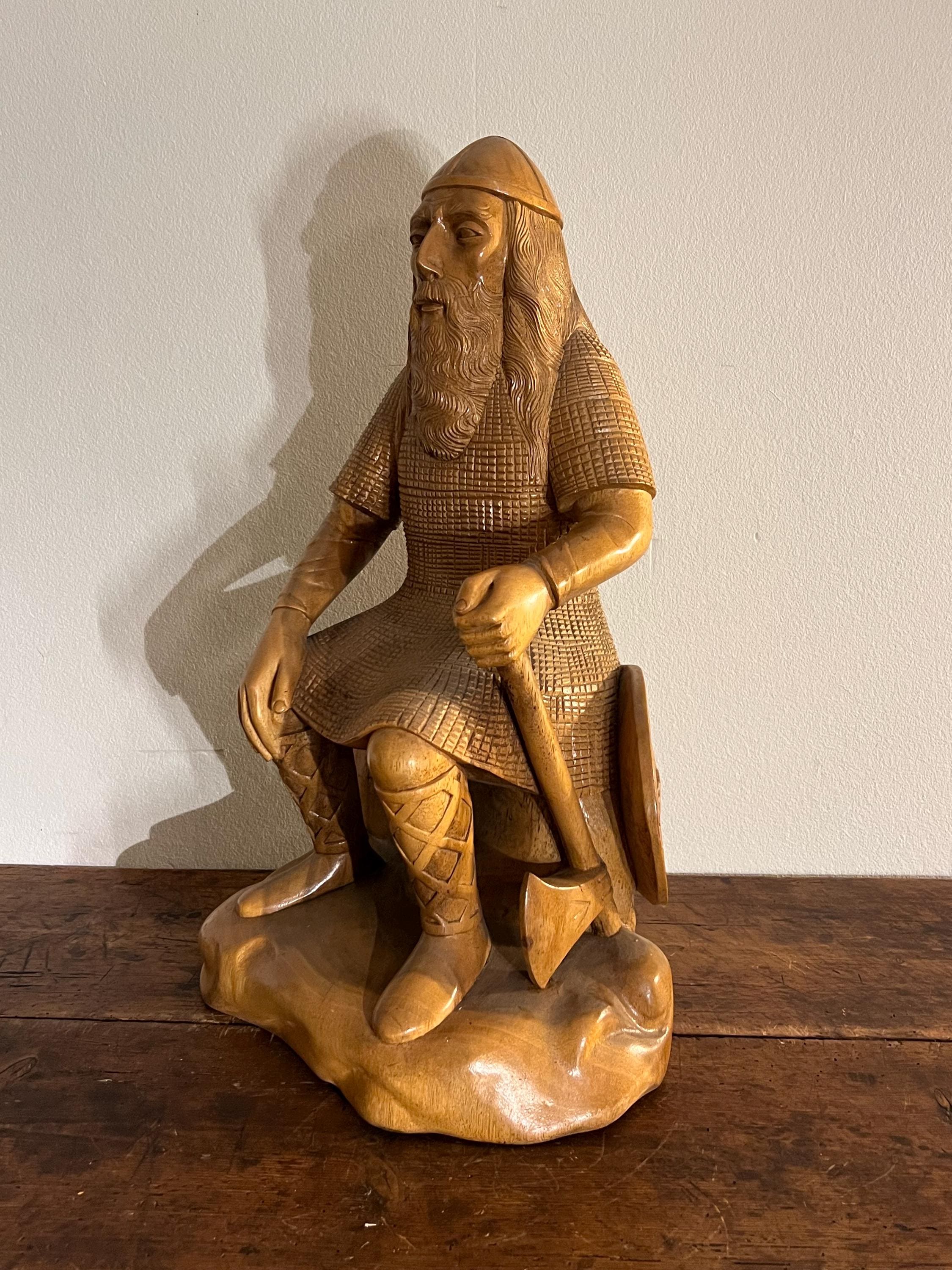 Mid-20th Century Norwegian Hand-Carved Viking Sculpture - Possibly King Eric Bloodaxe (Eirik Blodøks, King of Norway c. 930-935)