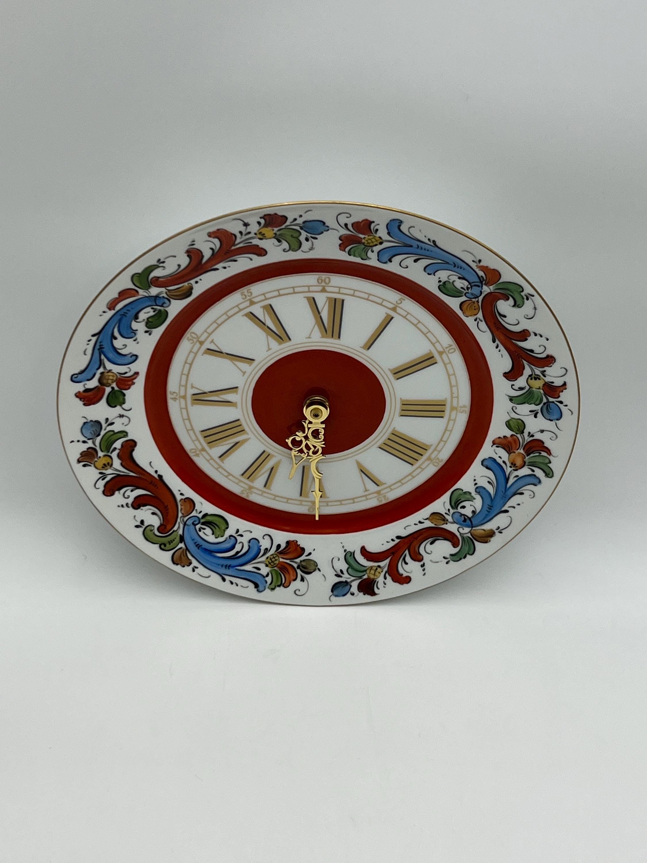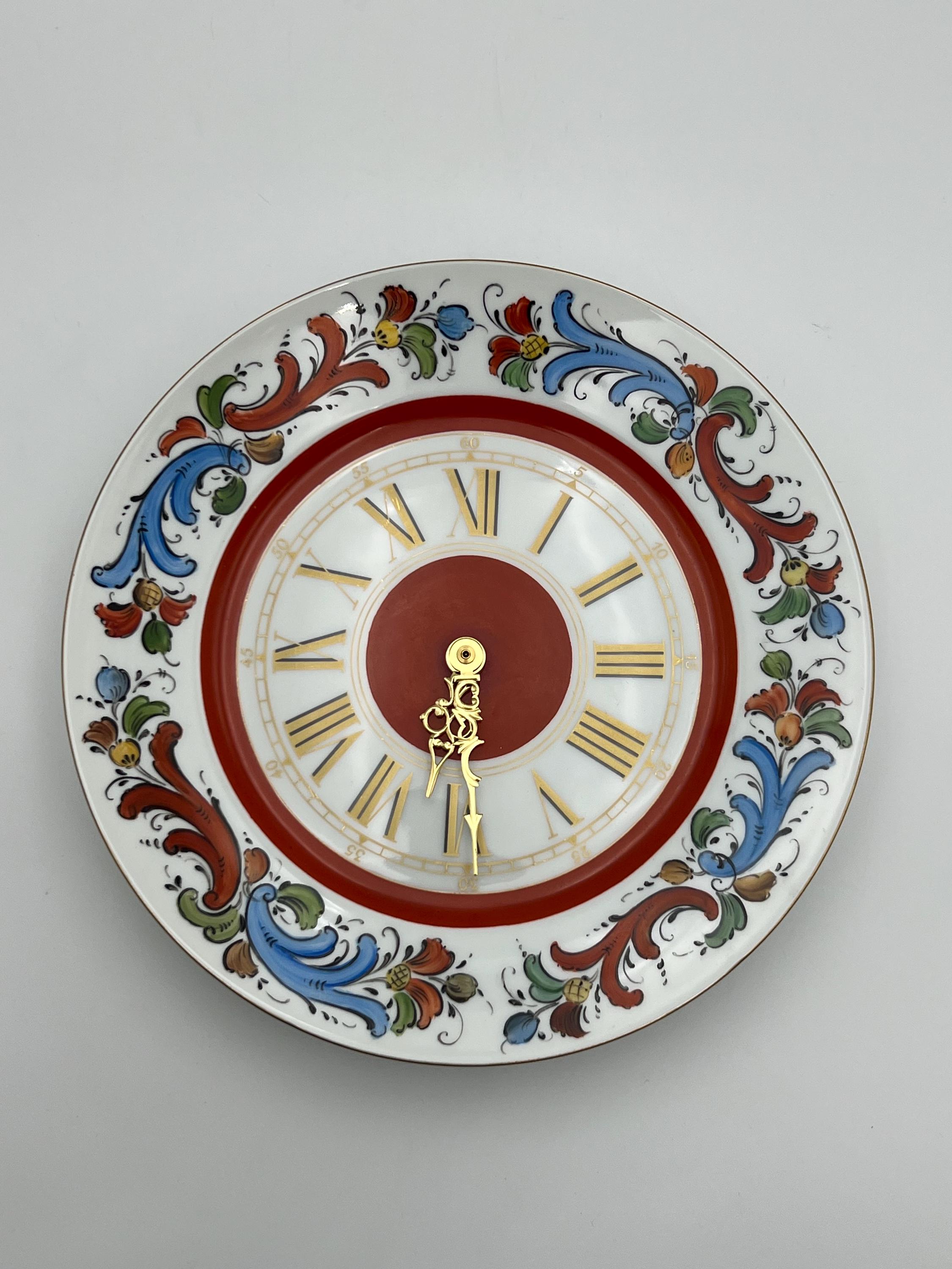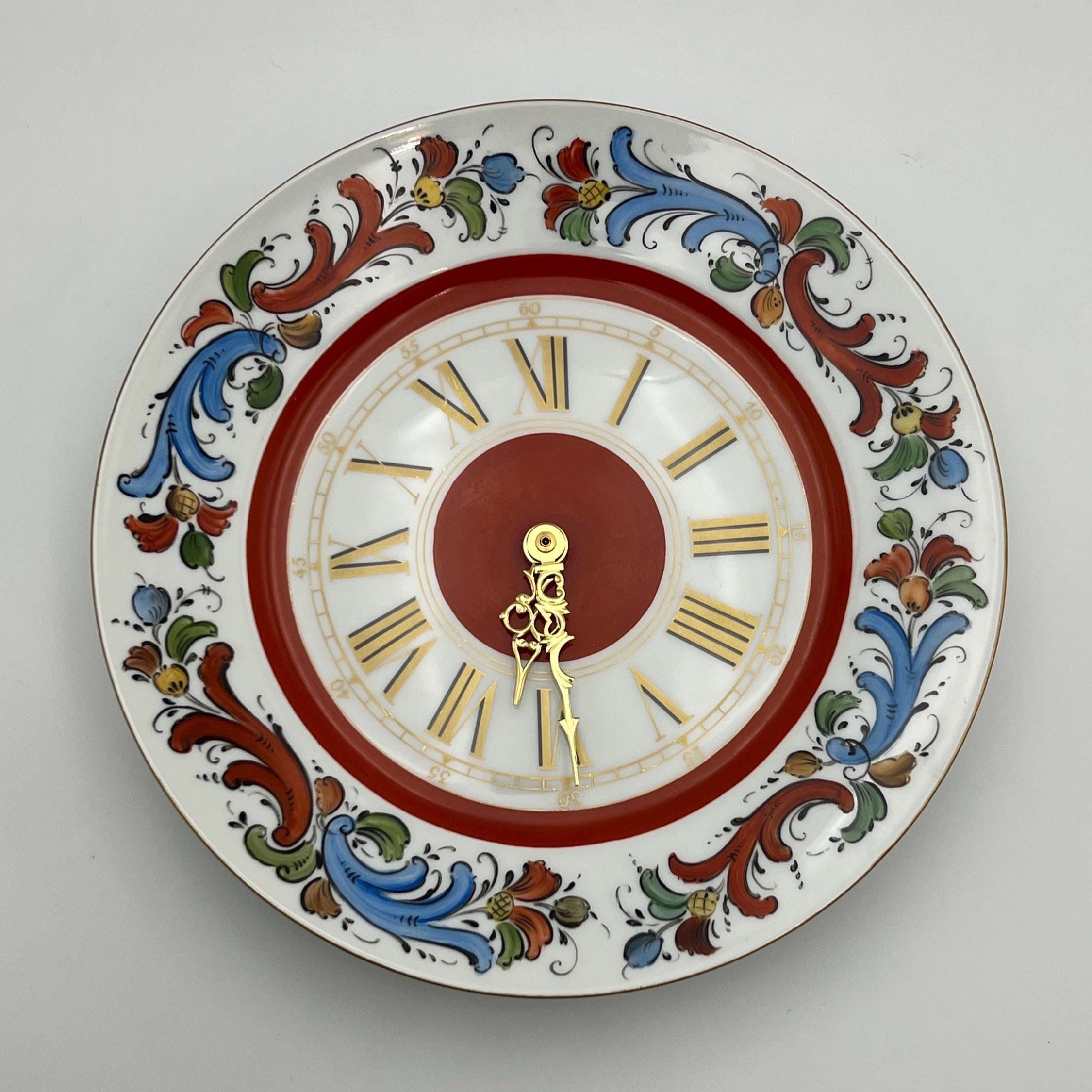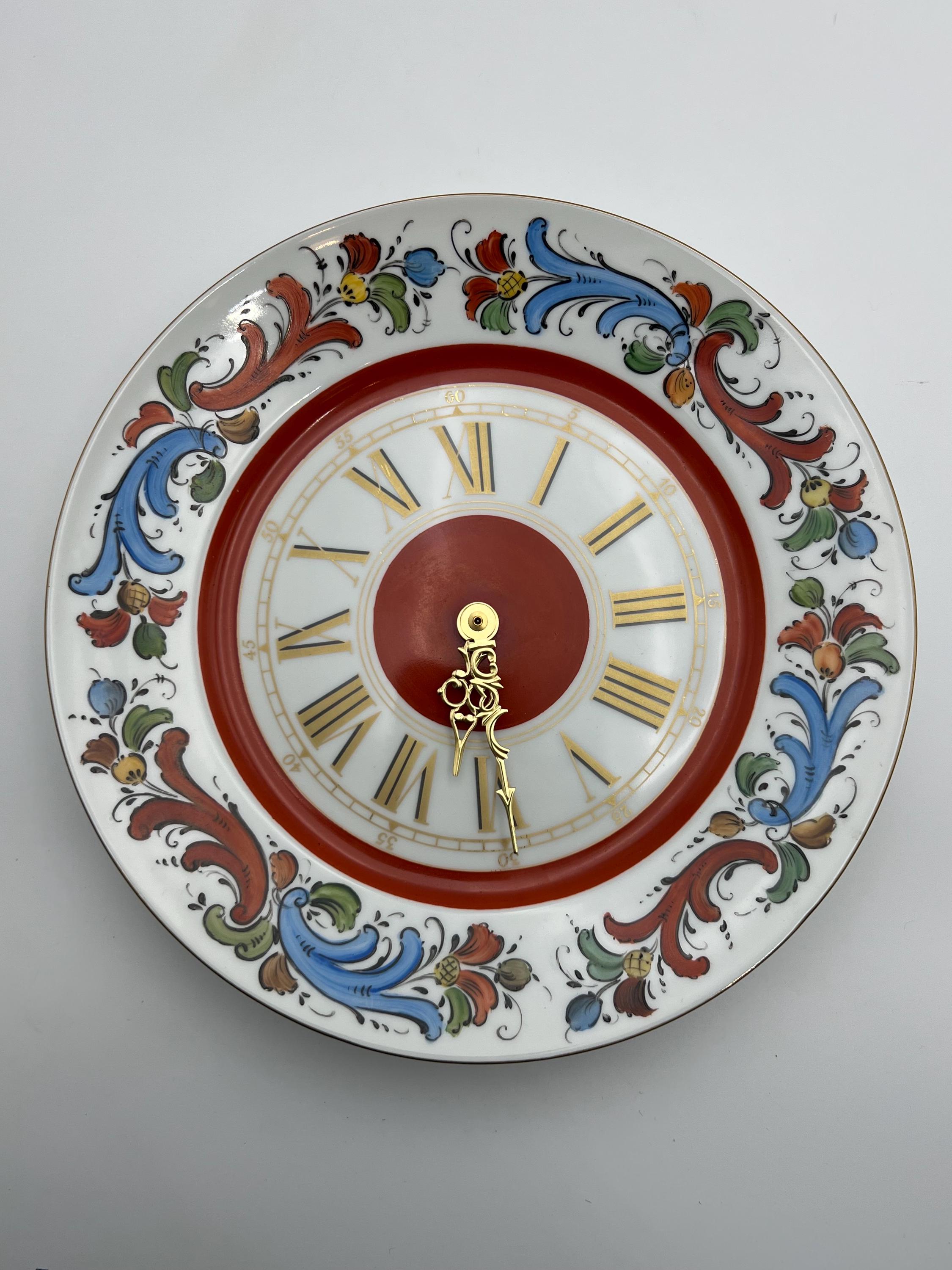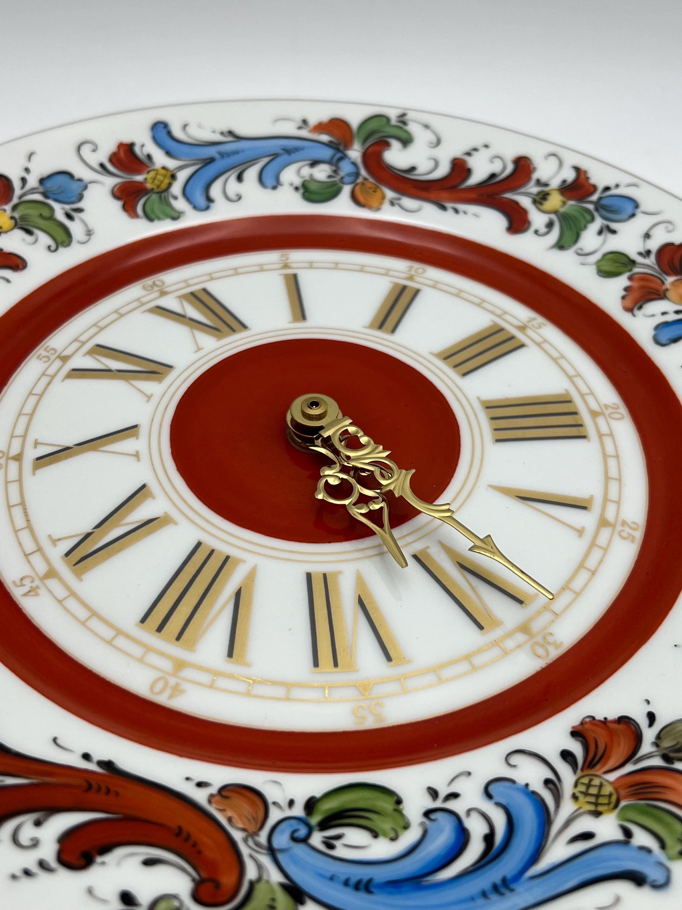 Ingeborg Aaltvedt for Porsgrund Porcelain Rosemaling Wall Clock, Norway 1976